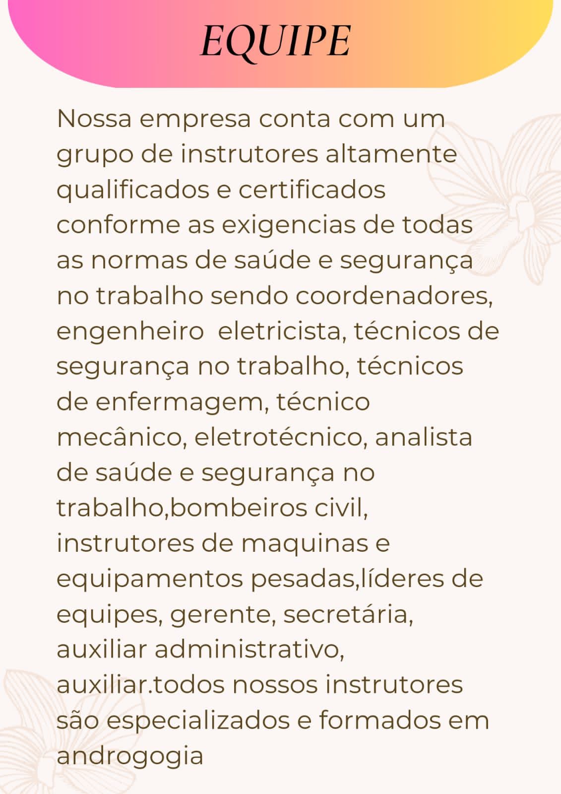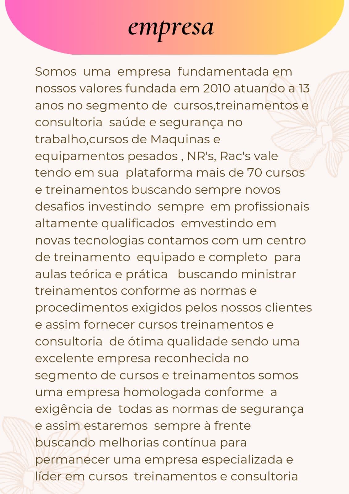 * Garantir EXCELENCIA EM qualificacao dos colaboradores de nossos clientes;